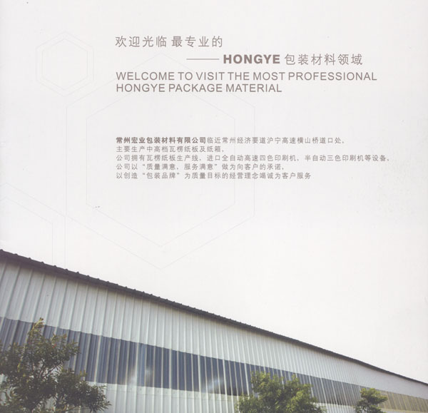 常州宏業(yè)包裝材料有限公司從最初的鮮為人知發(fā)展到現(xiàn)今包裝材料行業(yè)的主流品牌之一。公司生產(chǎn)的包裝材料產(chǎn)品不僅在國(guó)內(nèi)已經(jīng)建立了大量的穩(wěn)定的客戶,產(chǎn)品也已遠(yuǎn)銷(xiāo)到國(guó)外多個(gè)國(guó)家和地區(qū),深受客戶的好評(píng)。 公司臨近常州經(jīng)濟(jì)要道滬寧高速橫山道口處,主要生產(chǎn)中高檔瓦楞紙板及紙箱,公司擁有瓦楞紙板生產(chǎn)線、進(jìn)口全自動(dòng)高速四色印刷機(jī)、半自動(dòng)三色印刷機(jī)等設(shè)備,公司以“質(zhì)量滿意,服務(wù)滿意”做為向客戶的承諾,以創(chuàng)造“包裝品牌”為質(zhì)量目標(biāo)的經(jīng)營(yíng)理念竭誠(chéng)為客戶服務(wù)。 公司已通過(guò)ISO9001和1400的認(rèn)證。 宏業(yè)包裝的商業(yè)信條:宏業(yè)相信自己會(huì)成功, 宏業(yè)相信自己所銷(xiāo)售的商品 ,宏業(yè)員工相信自己所在的公司 ,宏業(yè)相信自己的員工和客戶,宏業(yè)相信成功并不是賺取金錢(qián),而是創(chuàng)造信譽(yù),只有好的信譽(yù),成功才會(huì)有價(jià)值,宏業(yè)相信世界上最美好最偉大的詞就是“自信”,宏業(yè)相信自已每做一次銷(xiāo)售,就交上一個(gè)朋友。