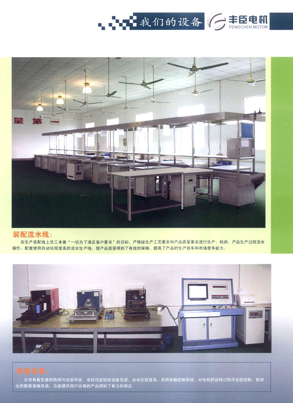 常州市豐臣電機有限公司成立于2001年6月,是一家在投資1000萬元基礎上創(chuàng)辦的股份合作制企業(yè)。 公司坐落于常州市遙觀鎮(zhèn)劍湖開發(fā)區(qū),西臨京杭大運河旁,南依312國道,北靠常錫路,交通便利,具有得天獨厚的地理優(yōu)勢。 豐臣電機公司專業(yè)生產(chǎn)從YY70-YY145系列感應電動機,年生產(chǎn)能力達150萬臺,年生產(chǎn)總值近1億元人民幣。公司現(xiàn)擁有員工300余人,其中高級工程師、高級技師、高級管理人員及其它專業(yè)技術人員40余人;擁有先進的生產(chǎn)能力、企業(yè)管理能力、技術開發(fā)能力、質量管理經(jīng)驗;具有各類專業(yè)生產(chǎn)設備25臺(套),專業(yè)檢測設備器具50余套。 本公司在發(fā)揮傳統(tǒng)技術優(yōu)勢的基礎上,積極開展多方位的技術合作,協(xié)同常州市津盛辦公用品有限公司開發(fā)感應電機產(chǎn)品市場。公司引進國際上先進的全自動浸漆生產(chǎn)線,產(chǎn)品生產(chǎn)自動化程度高,產(chǎn)品質量穩(wěn)定可靠。電機表面有噴漆、涂塑等防腐處理,產(chǎn)品具美觀、耐腐蝕、安裝簡便等優(yōu)點,廣泛應用于辦公設備用品、電動工具等行業(yè)。 本公司產(chǎn)品已通過UL認證,并于2002年通過ISO9001:2000國際質量管理體系認證, 2005我公司年被評為江蘇省市場重質量守誠信優(yōu)秀單位。 本公司以顧客滿意為宗旨,以科技創(chuàng)新、精品服務為經(jīng)營理念,注重產(chǎn)品質量的持續(xù)改進。我們的質量方針是:“以顧客要求為己任,我們不斷追求技術領先、優(yōu)質高效,滿意服務”,我公司真誠與各新老顧客合作,攜手共進。