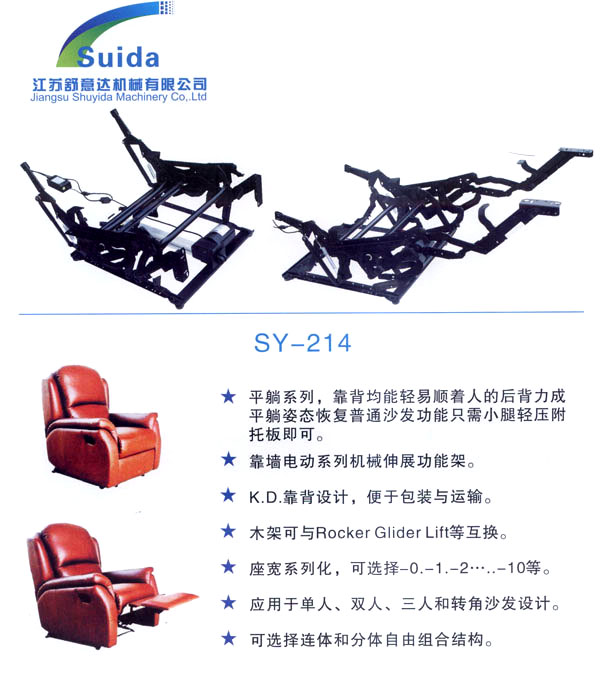 江蘇舒意達(dá)機(jī)械有限公司是一家集研發(fā)設(shè)計,生產(chǎn)制造及銷售的專業(yè)家具五金企業(yè)。公司成立于2006年,座落于風(fēng)景秀麗的江南常州,交通運(yùn)輸?shù)锰飒?dú)厚,為海內(nèi)外客商的來往交流,洽談和供貨提供了諸多便利,公司占地面積28000平方米,生產(chǎn)廠房面積18000平方米,獨(dú)立的辦公樓,擁有良好的工作環(huán)境。 我們的經(jīng)營思理念:堅持以人為本,科技為先,用先進(jìn)的設(shè)備,好的工藝流程制造一流的產(chǎn)品。 我們的口號:保證以優(yōu)秀的品質(zhì)服務(wù)于客人,我們的目標(biāo):研發(fā)更多舒適的產(chǎn)品,帶來生活的享受。 公司誠邀海內(nèi)外客商前來指導(dǎo)洽談,攜手共進(jìn),共造雙贏。