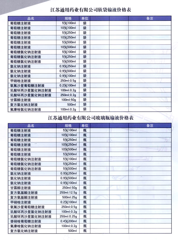 江蘇通用藥業(yè)有限公司,系于2001年投資建成的年產2000萬瓶大容量注射劑生產企業(yè),公司于當年12月即順利通過了國家藥監(jiān)局GMP認證。為了提升產品檔次,滿足多層次市場需求,公司又于2004年投資建設1000萬袋/年軟袋輸液生產線,目前已全線投產。