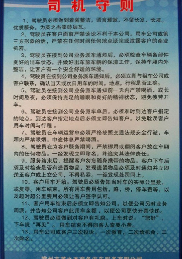 常州市英之杰商務(wù)汽車(chē)服務(wù)有限公司是一家專(zhuān)業(yè)從事企事業(yè)單位重要接待任務(wù)、企業(yè)高檔旅游等用車(chē)服務(wù)、以及中、小型高檔汽車(chē)的租賃業(yè)務(wù)。具有省交通廳批準(zhǔn)核發(fā)的客運(yùn)企業(yè)資質(zhì)證書(shū)。多年來(lái),本公司從行業(yè)管理要求出發(fā),結(jié)合本公司的實(shí)際情況,堅(jiān)持“親和、誠(chéng)信、專(zhuān)業(yè)、便捷”的服務(wù)品牌內(nèi)涵,注重團(tuán)隊(duì)建設(shè)、車(chē)輛管理、安全管理和優(yōu)質(zhì)服務(wù)等,進(jìn)一步提升本公司在我市客運(yùn)行業(yè)中的良好形象。本公司著重在服務(wù)、安全管理上下功夫,從經(jīng)營(yíng)管理、服務(wù)理念上找差距:從提高適應(yīng)市場(chǎng)的能力上做文章。扎扎實(shí)實(shí)地抓好各項(xiàng)管理工作,做強(qiáng)而不盲目求大,做憂而不盲目求全,一切以客戶需求為需求。目前公司與常武地區(qū)的多家大型企事業(yè)單位和上市公司(如國(guó)茂減速機(jī)集團(tuán)、國(guó)泰鑄造集團(tuán)、騰龍汽車(chē)零部件股份有限公司、石墨烯研究院、海斯町發(fā)動(dòng)機(jī)零部件有限公司等企事業(yè)單位)建立了良好的租車(chē)合作關(guān)系