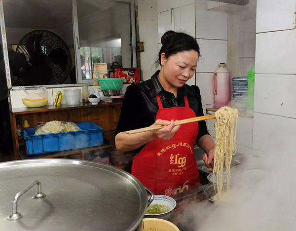 遙觀娟娟面館:青菜香菇雞蛋面 2016年歲末年初,武進(jìn)區(qū)商務(wù)局、武進(jìn)烹飪協(xié)會、《武進(jìn)日報》等單位,在全區(qū)范圍內(nèi)開展“武進(jìn)招牌面”評選活動,最終,遙觀娟娟面館被評定為“武進(jìn)招牌面”第一名。 2008年,馬玉娟所在的企業(yè)面臨倒閉,她開始謀求自己的創(chuàng)業(yè)之路。第一個想法就是開一家面館,因?yàn)槊妹民R小娟喜歡燒菜,親戚朋友吃了她燒的菜,無不嘖嘖稱贊。姐妹倆一合作,店名自然叫“娟娟面館”。 開面館,一面裝修,一面領(lǐng)“衛(wèi)生許可證”、“工商營業(yè)執(zhí)照”;再就是外出求藝學(xué)燒菜。姐妹倆兵分兩路:玉娟去學(xué)小炒,小娟去學(xué)大葷澆頭,不久便開張營業(yè)了。 行家吃面先品湯。娟娟面館的白湯是最樸實(shí)的燒法,它用大肉、排骨熬制4個小時,湯色清亮,香氣撲鼻。至于拌面湯,全部都是紅燒肉汁,加上香蔥、雞精等十多種調(diào)料,自然是色香味俱佳。 娟娟面館點(diǎn)單率最高的是青菜香菇雞蛋面,一菜一菇一蛋一湯,樸實(shí)無華,價廉物美,老少皆宜,久吃不厭,非常適宜我國人口的營養(yǎng)膳食結(jié)構(gòu)。其中小青菜是當(dāng)?shù)剞r(nóng)家的家常菜;雞蛋是當(dāng)?shù)毓麍@散養(yǎng)的母雞所生,味道自然地道純正了。 娟娟面館自開張以來,幾乎天天顧客盈門,高峰時要在門外等候。如今姐姐的兒子和妹妹的女兒都已上陣傳承,并在湖塘鎮(zhèn)馬杭紡織城附近新開了一家連鎖面館,每天要賣出300-500碗各式面點(diǎn)。