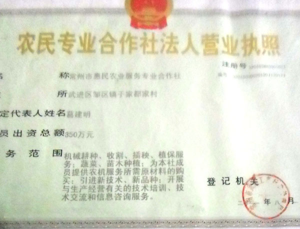 常州市惠民農(nóng)業(yè)服務專業(yè)合作社主要從事機械耕種、收割、插秧、植保服務;蔬菜、苗木種植;為本社成員提供農(nóng)機服務所需原材料的購買;引進新技術、新品種;開展與生產(chǎn)經(jīng)營有關的技術培訓、技術交流和信息咨詢服務。