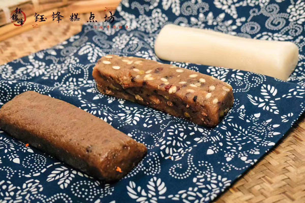 腳踏糕本名“年糕”,按常州周邊地區(qū)的風俗習慣,在春季前夕,各家各戶都要蒸年糕,吃年糕!案狻敝C音“高”,過年吃年糕被賜予“年年高”,一年高一年,鋒吉祥之意,表達這人們對未來美好生活的憧憬和良好的祝愿。今天小編要帶大家的就是一家至今保持著傳統(tǒng)手工制作的鈺鋒糕點坊。 鈺鋒糕點坊位于常州鄭陸鎮(zhèn)三皇廟范家莊,一個比較偏僻的村莊,雖然這家作坊不大,但香糯絲滑,軟糯適中,韌勁十足的腳踏糕吸引了無數(shù)的食客。制作一條腳踏糕要從淘米,浸泡,碾粉,鋪粉,一層一層的鋪下去,需要無數(shù)道制作工序,這些都是店主孫煥公公老周,憑著幾十年的經(jīng)驗,加上店主孫煥從不馬虎的決心! 這“腳踏”也并非赤腳上陣,而是把蒸好的糕倒入早以準備好的框子里,用布包裹好,上面再用薄膜包好,再蓋上布,再換上專門腳踏的布鞋,踩的時候要勻稱,左右腳要配合好,不然糕會高高低低,不平整,最后再拿蠟燭線拆成一條小長條,再拿帶包裝好,如此又香又糯的腳踏糕就大功告成了。 店主孫煥為了讓更多的人認識和了解常州腳踏糕的傳統(tǒng)文化和美食,她在傳統(tǒng)工藝中增加了適合現(xiàn)代文化的多種口味,她在糕里加入南瓜,紫薯,老紅糖,大麥汁,血糯米,核桃,葡萄干,紅棗等食材,做出五顏六色,純天然的口味,深受食客們的喜愛,不管是送人還是自己吃都非常新穎。 (重陽糕)重陽糕的由來,九九重陽,九是陽數(shù),也是陽數(shù)中最大的數(shù),九月初九,兩九相重,為之重陽,古人有重陽登高的習俗。高于糕同意,寓意人活九十九,生活步步高,秋景勝春光,夕陽無限好。夕陽紅成了老人對自己美好的祝愿和希望,所以從某種意義上來講它“祝壽糕”“長壽糕”重陽糕在常州地區(qū)是家喻戶曉的,下面小編帶你去一家至今保持傳統(tǒng)手工制作的鈺鋒糕點坊看一下吧。鈺鋒糕點坊位于常州市天寧區(qū)鄭陸鎮(zhèn)三皇廟范家莊,偏僻的小村莊,雖然有點偏僻,但是每到重陽節(jié)到來,每天還是有很多食客來訂購和購買店主孫煥做的多種口味的重陽糕。要想做出松軟香糯的重陽糕,原材料和糯米和梗米的配比也很重要,調整好比例開始淘米,浸泡,釓粉,放入糖攪拌,篩粉,糕底部放上荷葉,中間的餡心都是孫煥自己熬制,口感,香糯松軟,店主孫煥為了吸引更多現(xiàn)代年輕人,她在粉里加入南瓜,紫薯,紅糖,血糯等,色彩搭配很出跳,吸引來了很多食客,孫煥2019年開始自愿捐贈重陽糕給敬老院,她說這樣的公益活動自己很喜歡,雖然金額不大,缺表達了她的一份心意,并稱這樣的公益活動她每年都會做。