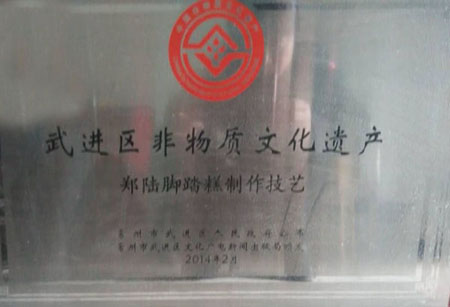 常州鄭陸何金興腳踏糕制作坊從事腳踏糕制作工藝200多年,五代傳承,制作面積300平方米左右,腳踏糕是用黏性大的米或米粉蒸成的糕,是中國農(nóng)歷年的應時食品。春節(jié),我國很多地區(qū)都有講究吃年糕。年糕有紅、黃、白三色,象征金銀,年糕又稱“年年糕”,與“年年高”諧音,寓意著人們的工作和生活一年比一年提高。所以前人有詩稱年糕:“年糕寓意稍云深,白色如銀黃色如金。年歲盼高時時利,虔誠默祝望財臨。”另有浙江省寧波市江北區(qū)慈城鎮(zhèn)的水磨年糕也是特別有名。