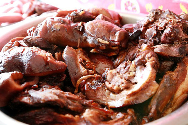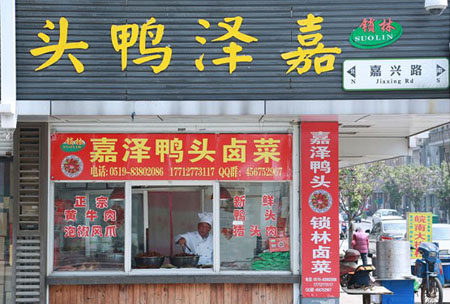 武進(jìn)區(qū)嘉澤老街十字路口,有一家不起眼的鹵菜專賣店,店面雖然不大,但一年365天每天來購買鹵菜的消費者卻絡(luò)繹不絕。 這家鹵菜店名叫鎖林鹵菜店,店主名叫萬鎖林。 今年已花甲之年的萬鎖林,出生在武進(jìn)區(qū)的一個鹵菜世家。解放前,正逢亂世,1927年其父萬友良17歲隨父從蘇北海安至夏溪鎮(zhèn)落戶,全家以經(jīng)營小吃、鹵菜為生。1956年萬友良經(jīng)營的鹵菜小吃店公私合營,起名為東方飯店(后改名為夏溪飯店),萬友良帶領(lǐng)其七個兒子全部從事餐飲事業(yè)。1972年,排行第六的萬鎖林初中畢業(yè)被分配到嘉澤飯店工作,直至1982年夫妻倆著手創(chuàng)辦鎖林鹵菜館,專業(yè)從事鹵菜的加工和銷售。 鎖林鹵菜采用祖?zhèn)髋浞,制作工藝?jīng)清洗—汆水—再清洗—油汆—加料—燒制—包裝等多道工序。萬鎖林在祖?zhèn)髅胤降幕A(chǔ)上,不斷探索創(chuàng)新,使鹵菜口味更加香醇可口。他還在菜肴中加入茴香、陳皮、桂皮等20多種中草藥,使產(chǎn)品兼具食用保健作用。 由于鎖林鹵菜色、香、味俱佳,而且價格合理,遠(yuǎn)近數(shù)十里群眾紛紛前來選購目前,該店已形成鴨頭、雞爪、豬頭肉、五香牛肉等四大系列,產(chǎn)品遠(yuǎn)銷北京、上海、浙江、海南及蘇、錫、常各地,深受各地消費者青睞。 購買地址: 一、嘉澤鎮(zhèn)菜市場內(nèi) 二、嘉澤鎮(zhèn)老街十字路口 電話:0519-83802086 訂購熱線:18915002160