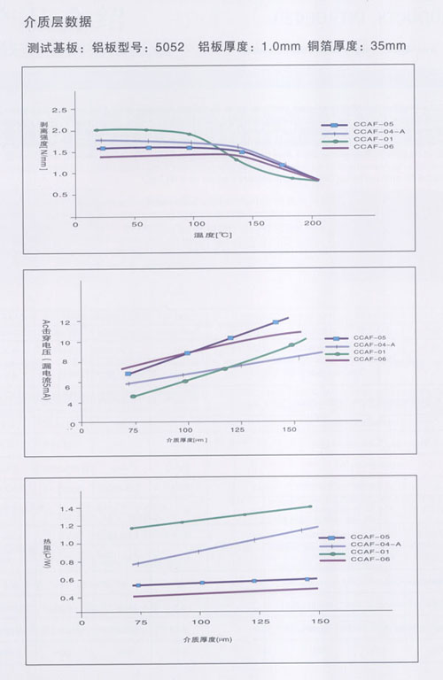 公司生產(chǎn)的CCAF-01型鋁基覆銅箔層壓板,熱阻為1.0℃/W,熱導(dǎo)率為1.0W/m·K;CCAF-04-A型鋁基覆銅箔層壓板,熱阻為0.65℃/W,熱導(dǎo)率為1.3~1.5W/m·K;CCAF-05型鋁基覆銅箔層壓板,熱阻為0.45℃/W,熱導(dǎo)率為2.0~2.2W/m·K,CCAF-06型鋁基覆銅箔層壓板,熱阻為:0.4℃/W,熱導(dǎo)率為2.5~2.8W/m·K。接近國際先進(jìn)水平,自主開發(fā)的散熱器基覆銅箔印制電路板層壓板,填補(bǔ)國內(nèi)空白。公司生產(chǎn)的鋁基覆銅箔板廣泛應(yīng)用于汽車點(diǎn)火器、摩托車調(diào)壓器、音箱模塊電源、通訊模塊電源、變頻模塊電源;各種大功率LED工程景觀照明:洗墻燈、投光燈、草坪燈、水底燈、噴泉燈、路燈、室內(nèi)照明、長1.2米LED照明燈、手電筒及液晶顯示器等。