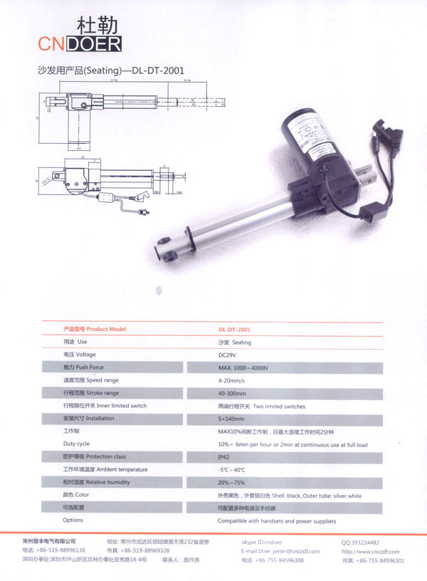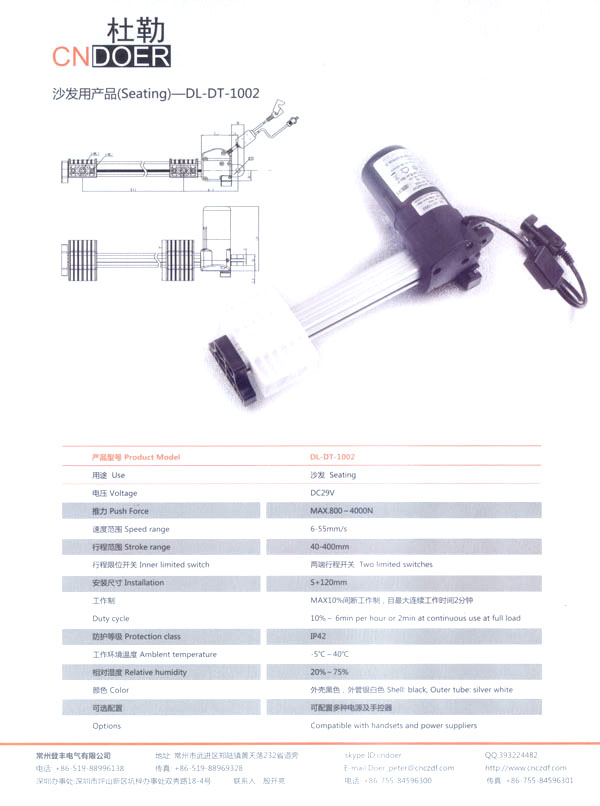 常州登豐電氣有限公司位于人杰地靈的江南古城—常州武進(jìn)區(qū)鄭陸鎮(zhèn)東青。緊臨常州火車站、滬寧高速公路、312國(guó)道、長(zhǎng)江港等,交通十分便捷。 公司最早創(chuàng)辦于1989年,歷經(jīng)20多年的艱苦創(chuàng)業(yè),本著“誠信為本、品質(zhì)至上”的經(jīng)營(yíng)理念,公司生產(chǎn)的“武微”牌空調(diào)電機(jī)、“蘇杰”牌電動(dòng)車電機(jī)和采用國(guó)外先進(jìn)技術(shù)制作的動(dòng)力強(qiáng)勁、同時(shí)具有過載保護(hù)和消音裝置的綠色環(huán)保產(chǎn)品:“登豐”、“聚美”牌食物垃圾處理器。這些產(chǎn)品在全國(guó)各地市場(chǎng)均享有較高的知名度。 如今,公司為謀求新的發(fā)展,立足于國(guó)內(nèi),放眼于國(guó)際市場(chǎng),投入了大量的人力、財(cái)力、物力,購置了先進(jìn)的全自動(dòng)生產(chǎn)流水線、全自動(dòng)繞線機(jī)和各類精密的測(cè)試儀器,多功能隔音房等設(shè)施,全新推出了具有美好前景和廣闊市場(chǎng)的主打產(chǎn)品:“杜勒”牌系列線性推桿及各類配套電機(jī)。該產(chǎn)品已通過ISO9001認(rèn)證,產(chǎn)品外觀新穎、制作精良、噪音小、操作靈活簡(jiǎn)便,暢銷國(guó)內(nèi),遠(yuǎn)銷國(guó)外,被廣泛應(yīng)用于電動(dòng)沙發(fā)、醫(yī)療護(hù)理床、手術(shù)床、按摩椅等眾多領(lǐng)域!岸爬铡碑a(chǎn)品已被越來越多的客戶所青睞和認(rèn)可! 公司竭誠歡迎各界朋友、新老客戶前來洽談合作,共謀發(fā)展。我們也將不斷開拓創(chuàng)新,提高產(chǎn)品質(zhì)量,完善售后服務(wù)體系,努力打造成為行業(yè)先鋒企業(yè)!