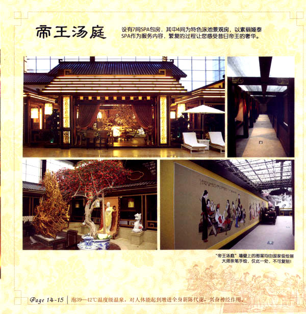 淹城花都溫泉水城孕育天地之精華,悅身、悅?cè)、悅心、悅神。置身其中泉水潺潺,霧氣繚繞、花瓣飄香,恍若仙境。“掬水月在手,弄花香滿衣”,花都溫泉的浪漫與溫潤(rùn)在這里完美展現(xiàn)。 花都溫泉水城包括洗浴區(qū)、戲水世界、露天溫泉、自助餐廳、生態(tài)房、別墅區(qū)、紅文化房、VIP區(qū)等多種功能區(qū)域,是集溫泉養(yǎng)生、休閑住宿、演藝會(huì)務(wù)為—體的休閑度假勝地,給賓客帶來江南小鎮(zhèn)的浪漫水城之旅。 古木新枝畔賓客對(duì)酒當(dāng)歌,溪泉石椅旁把茶品啜。 淹城-三勤生態(tài)酒店,這里是一處綠色生態(tài)的美食家園。此地鬼斧神工.奇水異石,和風(fēng)細(xì)雨林中穿過,引百鳥朝來暮歌;這里集生態(tài)餐飲、演藝、中小型會(huì)務(wù)為一體,將現(xiàn)代裝飾風(fēng)格和古雅拙樸的自然裝修完美整合;這里聚集大江南北名廚,推出精致綠色美昧佳肴。來到這里,賓客可享田園至美之景,品舌尖至鮮之味,實(shí)乃人生一大樂事。