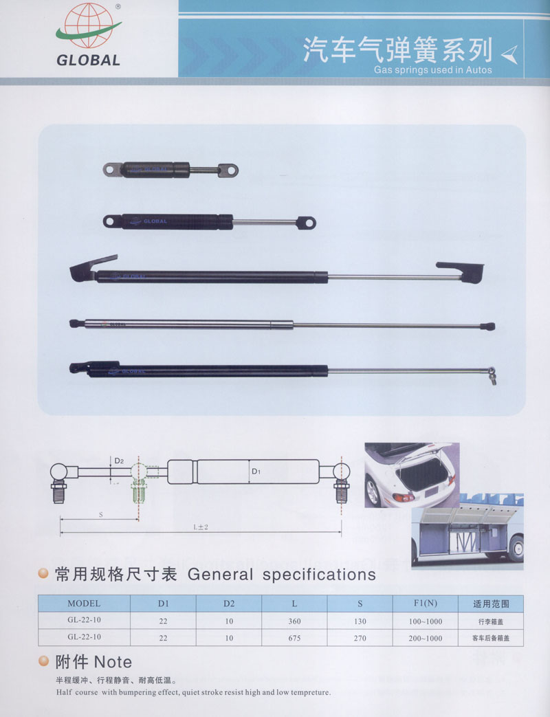 常州市全球氣彈簧有限公司坐落于高新開發(fā)區(qū)南區(qū),占地12800平方米,是專業(yè)生產(chǎn)用于家具,汽車,醫(yī)療設(shè)施以及工業(yè)等各類氣彈簧的廠家。公司擁有專業(yè)的技術(shù)人員和先進(jìn)的設(shè)備,產(chǎn)品大部分出口到國外,產(chǎn)品的質(zhì)量和性能得到內(nèi)外客戶的認(rèn)可和歡迎。 公司還配備了專門研究和開發(fā)新產(chǎn)品的技術(shù)人員以滿足不同客戶的需求。 您的關(guān)注和支持是我們不斷創(chuàng)新和發(fā)展的動力,更好的質(zhì)量和服務(wù)是我們的工作理念,我們將竭誠為您服務(wù)。