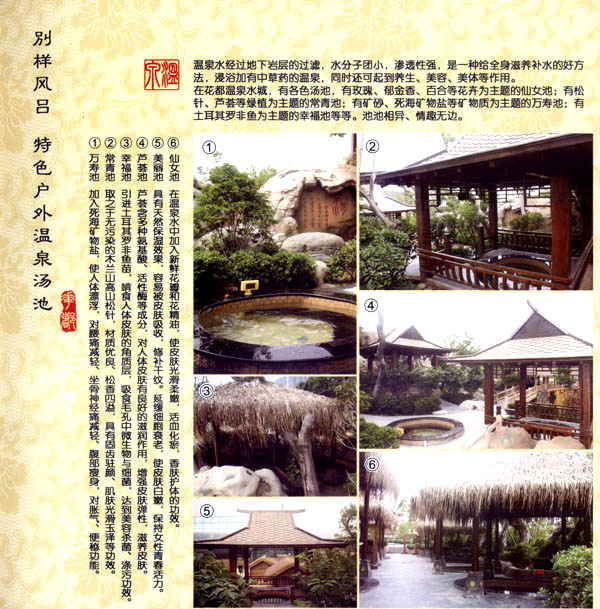 花都溫泉水城包括洗浴區(qū)、戲水世界、露天溫泉、自助餐廳、生態(tài)房、別墅區(qū)、紅文化房、VIP區(qū)等多種功能區(qū)域,是集溫泉養(yǎng)生、休閑住宿、演藝會務(wù)為—體的休閑度假勝地,給賓客帶來江南小鎮(zhèn)的浪漫水城之旅。