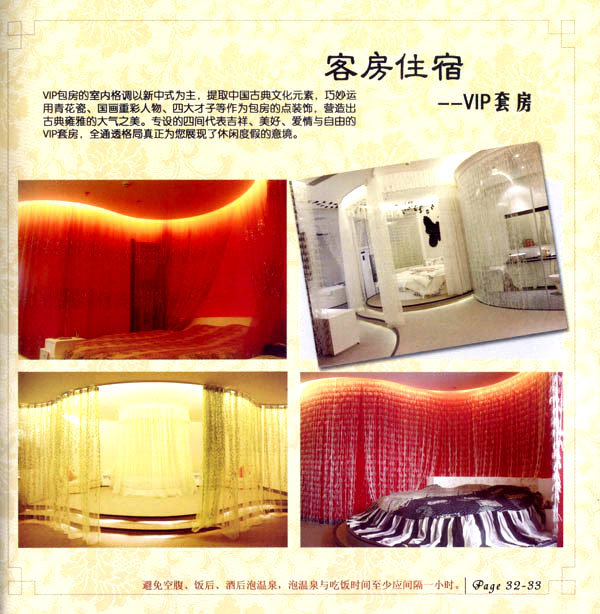 淹城花都溫泉水城孕育天地之精華,悅身、悅?cè)、悅心、悅神。置身其中泉水潺潺,霧氣繚繞、花瓣飄香,恍若仙境。“掬水月在手,弄花香滿衣”,花都溫泉的浪漫與溫潤(rùn)在這里完美展現(xiàn)。 花都溫泉水城包括洗浴區(qū)、戲水世界、露天溫泉、自助餐廳、生態(tài)房、別墅區(qū)、紅文化房、VIP區(qū)等多種功能區(qū)域,是集溫泉養(yǎng)生、休閑住宿、演藝會(huì)務(wù)為—體的休閑度假勝地,給賓客帶來(lái)江南小鎮(zhèn)的浪漫水城之旅。 古木新枝畔賓客對(duì)酒當(dāng)歌,溪泉石椅旁把茶品啜。 淹城-三勤生態(tài)酒店,這里是一處綠色生態(tài)的美食家園。此地鬼斧神工.奇水異石,和風(fēng)細(xì)雨林中穿過(guò),引百鳥朝來(lái)暮歌;這里集生態(tài)餐飲、演藝、中小型會(huì)務(wù)為一體,將現(xiàn)代裝飾風(fēng)格和古雅拙樸的自然裝修完美整合;這里聚集大江南北名廚,推出精致綠色美昧佳肴。來(lái)到這里,賓客可享田園至美之景,品舌尖至鮮之味,實(shí)乃人生一大樂(lè)事。