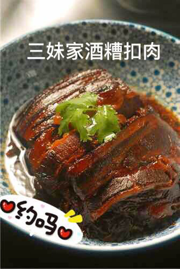 橫林有個地兒叫楊歧村,有句老話叫“上不靠橫林,下不靠洛社”,說的就是那里。 楊歧村過去幾十米就是無錫地界,今天小編推薦的土菜館「三妹農(nóng)家小吃」就在那里。 當小編一路七拐八拐,中午11點半到達那里時,門面雖然很簡陋,但店門口已然停了好多輛車。剛進入店門,就發(fā)現(xiàn)這家店人氣好旺,十幾桌基本都坐滿了。(所以說,人不可貌相,餐館也是如此) "三妹,三妹!"店里客人叫喚聲不絕于耳,原來老板娘叫楊三妹啊。你們忙,我們先隨便看看。 過大廳到后堂就是冷菜間,里面有白切草雞、鹵豬干、拌馬蘭等十幾種土菜,尤其那草雞濃郁的香味,讓小編肚子叫得咕咕響。 往前是活貨區(qū),各種鮮魚活蝦一格一格區(qū)分養(yǎng)著,再里面是開放式廚房,每個客人都可以看到,選用的放心食材和調料。  吃貨老板娘,楊三妹,三妹,從小到大一直有個嗜好,就是愛美味,不光喜歡吃,還喜歡鉆研做。2010年,「三妹小吃」開張,因為獨具特色,在楊歧這個小村一炮而紅。要說楊三妹最拿手的菜是什么,當然是酒糟扣肉。 糟本來就是一種做米酒留下來后,用來吊燒酒的。但是我們常州人很聰明,把糟和肉放在一起,做成一道美味菜,叫酒糟扣肉。 楊三妹的酒糟扣肉之所以有名,得益于母親的悉心傳授。記憶里小辰光,她母親做的扣肉總比別人家的香!冈恪,釀完酒后留下的糟,會與炒熟的新糯米,拌和在一起,陳一年。「肉」,選擇本地養(yǎng)殖的良種豬,沒有臊味。 長大后,她把記憶里的美味延續(xù)了下來。精益求精的她,對扣肉的制作過程要求很嚴格。別人家制作都是把肉直接切大塊,排碗,熬槽,蒸爛。三妹說,這樣烹制,肉汁的鮮美會流失很多,口感減分不少。她的做法是精選新鮮豬五花,整大塊清蒸,保留肉汁的鮮美,之后再切塊紅燒,排碗,熬糟,澆蓋,再蒸。 三妹酒糟扣肉,出鍋后,色澤紅潤,味道鮮美。既有酒的香味,又有肉的鮮美,而且經(jīng)過蒸煮后,油脂都出來了,爽口不油膩。