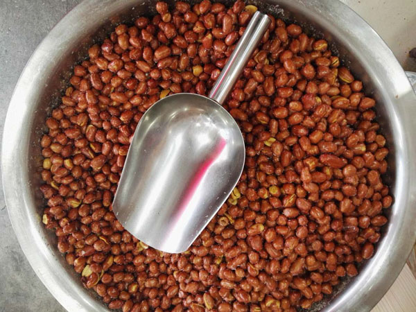 湖塘花東街上的“石頭炒貨店”是20多年的老字號了。上個世紀90年代,二十郎當歲的“石頭”一一石愛軍從徐州來到武進,就在這條街上擺了個炒貨攤!皫灼椒矫椎男〉財偅吷霞軅大鐵鍋,炒出的瓜子、花生、蠶豆,鋪在竹篾上篩過、冷卻后就可以賣了!笔瘣圮娀貞,街坊鄰里冒著冬日的嚴寒,擠在地攤前嘗著剛出鍋的瓜子的場景,還歷歷在目。20多年過去了,鄰居們都成了最熟悉的親人,從年輕姑娘到抱著孫子的老人,大家還是最愛吃石頭炒的瓜子。而炒貨店的店面也擴大了,并且在湖塘另開了多家分店。