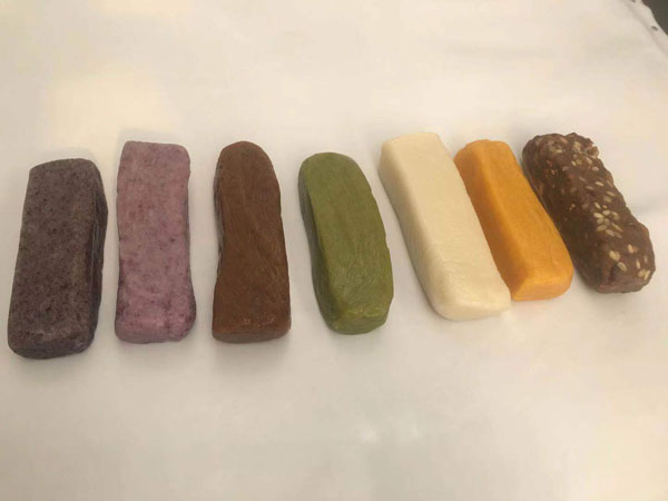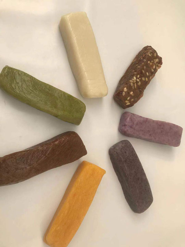 腳踏糕本名“年糕”,按常州周邊地區(qū)的風(fēng)俗習(xí)慣,在春季前夕,各家各戶都要蒸年糕,吃年糕。“糕”諧音“高”,過年吃年糕被賜予“年年高”,一年高一年,鋒吉祥之意,表達(dá)這人們對未來美好生活的憧憬和良好的祝愿。今天小編要帶大家的就是一家至今保持著傳統(tǒng)手工制作的鈺鋒糕點(diǎn)坊。 鈺鋒糕點(diǎn)坊位于常州鄭陸鎮(zhèn)三皇廟范家莊,一個(gè)比較偏僻的村莊,雖然這家作坊不大,但香糯絲滑,軟糯適中,韌勁十足的腳踏糕吸引了無數(shù)的食客。制作一條腳踏糕要從淘米,浸泡,碾粉,鋪粉,一層一層的鋪下去,需要無數(shù)道制作工序,這些都是店主孫煥公公老周,憑著幾十年的經(jīng)驗(yàn),加上店主孫煥從不馬虎的決心! 這“腳踏”也并非赤腳上陣,而是把蒸好的糕倒入早以準(zhǔn)備好的框子里,用布包裹好,上面再用薄膜包好,再蓋上布,再換上專門腳踏的布鞋,踩的時(shí)候要?jiǎng)蚍Q,左右腳要配合好,不然糕會(huì)高高低低,不平整,最后再拿蠟燭線拆成一條小長條,再拿帶包裝好,如此又香又糯的腳踏糕就大功告成了。 店主孫煥為了讓更多的人認(rèn)識和了解常州腳踏糕的傳統(tǒng)文化和美食,她在傳統(tǒng)工藝中增加了適合現(xiàn)代文化的多種口味,她在糕里加入南瓜,紫薯,老紅糖,大麥汁,血糯米,核桃,葡萄干,紅棗等食材,做出五顏六色,純天然的口味,深受食客們的喜愛,不管是送人還是自己吃都非常新穎。 (重陽糕)重陽糕的由來,九九重陽,九是陽數(shù),也是陽數(shù)中最大的數(shù),九月初九,兩九相重,為之重陽,古人有重陽登高的習(xí)俗。高于糕同意,寓意人活九十九,生活步步高,秋景勝春光,夕陽無限好。夕陽紅成了老人對自己美好的祝愿和希望,所以從某種意義上來講它“祝壽糕”“長壽糕”重陽糕在常州地區(qū)是家喻戶曉的,下面小編帶你去一家至今保持傳統(tǒng)手工制作的鈺鋒糕點(diǎn)坊看一下吧。鈺鋒糕點(diǎn)坊位于常州市天寧區(qū)鄭陸鎮(zhèn)三皇廟范家莊,偏僻的小村莊,雖然有點(diǎn)偏僻,但是每到重陽節(jié)到來,每天還是有很多食客來訂購和購買店主孫煥做的多種口味的重陽糕。要想做出松軟香糯的重陽糕,原材料和糯米和梗米的配比也很重要,調(diào)整好比例開始淘米,浸泡,釓粉,放入糖攪拌,篩粉,糕底部放上荷葉,中間的餡心都是孫煥自己熬制,口感,香糯松軟,店主孫煥為了吸引更多現(xiàn)代年輕人,她在粉里加入南瓜,紫薯,紅糖,血糯等,色彩搭配很出跳,吸引來了很多食客,孫煥2019年開始自愿捐贈(zèng)重陽糕給敬老院,她說這樣的公益活動(dòng)自己很喜歡,雖然金額不大,缺表達(dá)了她的一份心意,并稱這樣的公益活動(dòng)她每年都會(huì)做。
