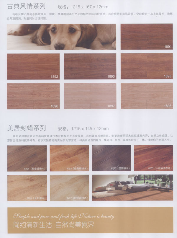 公司生產(chǎn)的地板所選用的材料均為進(jìn)口或國(guó)內(nèi)上等材料。嚴(yán)格的入廠檢驗(yàn),不使任何不合格的原材料流入生產(chǎn)環(huán)節(jié),優(yōu)異的生產(chǎn)加工工藝使原材料和精良設(shè)備的優(yōu)勢(shì)發(fā)揮至及致;嚴(yán)格的質(zhì)量管理體系更使每一流轉(zhuǎn)環(huán)節(jié)的產(chǎn)品品質(zhì)一流。每塊出廠的地板都符合比國(guó)標(biāo)更嚴(yán)格品質(zhì)標(biāo)準(zhǔn)。
