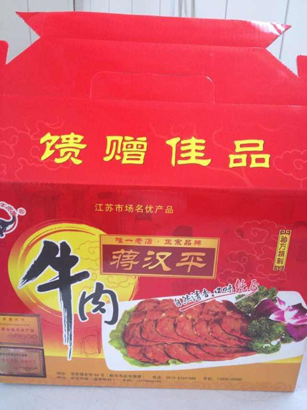 湟里漢平牛肉館創(chuàng)建于二十世紀(jì)初,當(dāng)時湟里鎮(zhèn)乃蘇、浙、皖三省交界的商貿(mào)重鎮(zhèn),而湟里“牛市”交易更是聞名遐邇,始祖利用當(dāng)?shù)貎?yōu)質(zhì)的水牛資源,配以特制秘方精制而成,其肉質(zhì)細(xì)膩,筋肉相同,鮮香美味,百吃不厭,當(dāng)時廣受各路商界贊譽。蔣氏牛肉聲名遠(yuǎn)揚。經(jīng)過祖先秘方與現(xiàn)代工藝的不斷完善,使得現(xiàn)在的蔣漢平牛肉館在常武地區(qū)享有盛名,成為唯一的正宗湟里牛肉,各界星級大酒店已把蔣氏的“湟里牛肉”搬上菜譜,成為一道必吃的佳肴,同時也是人們饋贈親友的首選佳品。