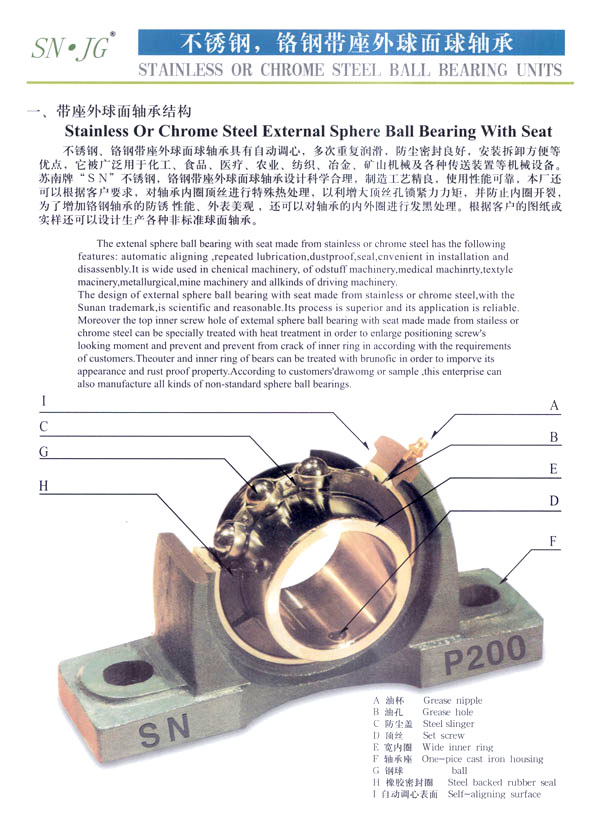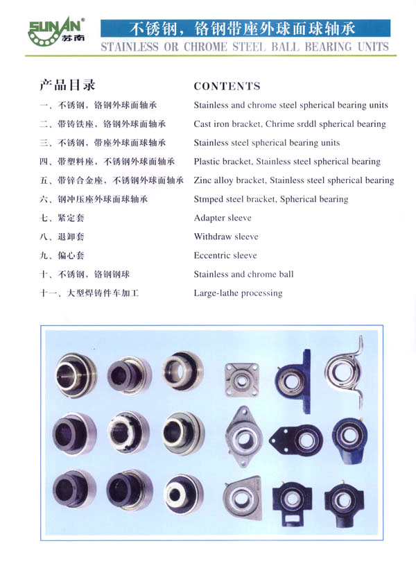 常州市武進(jìn)蘇南軸承有限公司是生產(chǎn)鋼球及帶座外球面軸承的專業(yè)工廠,主要生產(chǎn)蘇南牌“SN”不銹鋼球、鉻鋼鋼球,以及不銹鋼、鉻鋼UC、UCX、UK、HC、SB、SA、SER、UOOO、KOOO及其它非標(biāo)系列各類帶座外球面軸承、偏心套、緊定套等產(chǎn)品。本廠生產(chǎn)規(guī)格有軸承鋼球0.5-150m/m,碳鋼球0.5-150m/m,不銹鋼球0.8-50m/m,同時(shí)定做各種特殊規(guī)格的不銹鋼球、銅球、陶瓷球等。為廣大用戶提供品質(zhì)優(yōu)良,規(guī)格齊全,價(jià)格合理的各種鋼球。 本公司位于常州南部,錫宜高速公路串境而過, 交通便利。南瀕風(fēng)景秀麗的太湖,沿湖丘陵地帶人文景觀豐富,為常州市武進(jìn)區(qū)太湖旅游度假區(qū) 。本廠環(huán)境優(yōu)美,具有良好的生產(chǎn)環(huán)境,我們竭誠(chéng)歡迎國(guó)內(nèi)外的朋友進(jìn)行廣泛多樣的經(jīng)濟(jì)合作交往和貿(mào)易合作,并為你提供優(yōu)良的服務(wù)。 本公司技術(shù)力量雄厚,工藝裝備先進(jìn),檢測(cè)手段完備,產(chǎn)品質(zhì)量穩(wěn)定,使用性能各項(xiàng)指標(biāo)都達(dá)到國(guó)際先進(jìn)水平,產(chǎn)品主要銷往美國(guó)、法國(guó)、德國(guó)、日本、意大利、澳大利亞、韓國(guó)、加拿大、及東南亞等國(guó)家和地區(qū)。本公司的“SN”商標(biāo)鋼球及帶座外球面軸承已贏得國(guó)內(nèi)外廣大用戶的信賴。 本公司具有外貿(mào)自營(yíng)出口權(quán),并于2002年9月通過ISO9001-2000版質(zhì)量體系認(rèn)證,于2004年8月通過“CQC”產(chǎn)品質(zhì)量認(rèn)證。