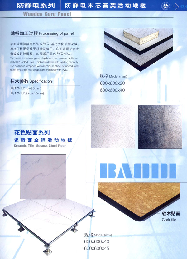 常州市寶進(jìn)防靜電設(shè)備有限公司是各類防靜電產(chǎn)品開發(fā)、設(shè)計(jì)、制造、安裝服務(wù)于一體的企業(yè)。以上海物理學(xué)會(huì)空間靜電專業(yè)委員會(huì)強(qiáng)大的技術(shù)力量為后盾。公司主要致力于各類機(jī)房、電氣室設(shè)計(jì)、安裝;各類防靜電干擾處理及用戶特種需求。公司擁有防空間靜電干擾—聲學(xué)復(fù)合系統(tǒng)、輕質(zhì)全鋼活動(dòng)地板、高環(huán)保型抗靜電貼面等多項(xiàng)發(fā)明專利,是國內(nèi)該行業(yè)中唯一擁有自主知識(shí)產(chǎn)權(quán)的企業(yè)。 公司主要產(chǎn)品“寶迪”牌 防靜電高架地板及板材、OA網(wǎng)絡(luò)地板。產(chǎn)品廣泛用于電子廠房、金融系統(tǒng)、電力、廣電、軍隊(duì)及智能化樓宇。并向多個(gè)國家出口。 針對發(fā)泡水泥填充的全鋼高架地板自身重、承載差的缺點(diǎn),我們開發(fā)了輕質(zhì)全鋼高架地板。在提前地板承載的同時(shí),大幅減輕了地板的自重。 公司一貫嚴(yán)格執(zhí)行ISO9001-2000質(zhì)量保證體系,為用戶提供高品質(zhì)的產(chǎn)品及完善的售后服務(wù)是公司一貫的宗旨。