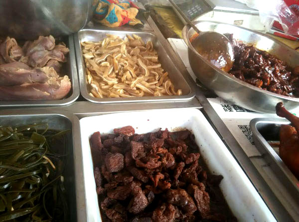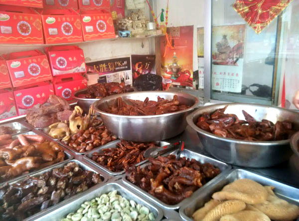 武進(jìn)區(qū)嘉澤老街十字路口,有一家不起眼的鹵菜專賣店,店面雖然不大,但一年365天每天來購買鹵菜的消費者卻絡(luò)繹不絕。 這家鹵菜店名叫鎖林鹵菜店,店主名叫萬鎖林。 今年已花甲之年的萬鎖林,出生在武進(jìn)區(qū)的一個鹵菜世家。解放前,正逢亂世,1927年其父萬友良17歲隨父從蘇北海安至夏溪鎮(zhèn)落戶,全家以經(jīng)營小吃、鹵菜為生。1956年萬友良經(jīng)營的鹵菜小吃店公私合營,起名為東方飯店(后改名為夏溪飯店),萬友良帶領(lǐng)其七個兒子全部從事餐飲事業(yè)。1972年,排行第六的萬鎖林初中畢業(yè)被分配到嘉澤飯店工作,直至1982年夫妻倆著手創(chuàng)辦鎖林鹵菜館,專業(yè)從事鹵菜的加工和銷售。 鎖林鹵菜采用祖?zhèn)髋浞剑谱鞴に嚱?jīng)清洗—汆水—再清洗—油汆—加料—燒制—包裝等多道工序。萬鎖林在祖?zhèn)髅胤降幕A(chǔ)上,不斷探索創(chuàng)新,使鹵菜口味更加香醇可口。他還在菜肴中加入茴香、陳皮、桂皮等20多種中草藥,使產(chǎn)品兼具食用保健作用。 由于鎖林鹵菜色、香、味俱佳,而且價格合理,遠(yuǎn)近數(shù)十里群眾紛紛前來選購目前,該店已形成鴨頭、雞爪、豬頭肉、五香牛肉等四大系列,產(chǎn)品遠(yuǎn)銷北京、上海、浙江、海南及蘇、錫、常各地,深受各地消費者青睞。 購買地址: 一、嘉澤鎮(zhèn)菜市場內(nèi) 二、嘉澤鎮(zhèn)老街十字路口 電話:0519-83802086 訂購熱線:18915002160
