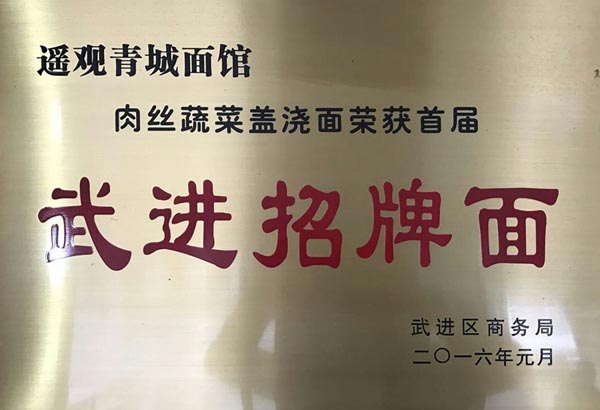 武進(jìn)區(qū)青城面館經(jīng)營(yíng)面積280平方米左右,主要特色是現(xiàn)炒肉絲,素菜蓋澆面,面館創(chuàng)始人今年63歲的王蘭珍,她對(duì)美食有著高于常人的悟性。她開過(guò)饅頭店,開過(guò)小飯館,承包過(guò)食堂,燒菜、取料樣樣在行,吃過(guò)的人常常贊不絕口。 20世紀(jì)初,在跟德興面館的老師傅學(xué)了做面手藝后,王蘭珍萌生了開一家面館的想法,除了可以養(yǎng)家糊口,最重要的是想讓更多人嘗嘗自己的手藝。于是,她在自己的住處擺起了幾張桌椅,面館就算正式營(yíng)業(yè)了。因?yàn)榧易∏喑菢,王蘭珍干脆取名“青城面館”。 “從早上5點(diǎn)多開始營(yíng)業(yè),到下午1點(diǎn)多打烊,一天至少要賣掉300多碗面,用掉近160斤面粉!睘楹吻喑敲骛^的面條如此受歡迎,兒媳婦陸偉紅說(shuō)秘訣在于湯頭和澆頭。湯頭分白湯和紅湯,白湯是由10斤豬骨頭熬制而成,湯色清澈而味道濃郁;紅湯以骨頭湯作底湯,加入茴香、甘草、草果等20多種中草藥,以及糖、醬油等調(diào)味品,鮮而不腥,散發(fā)出陣陣香味。 和一般面館事先燒制好澆頭,放在盆里供客人選擇不同,青城面館的澆頭都是一份份現(xiàn)炒的,特別講究食材的新鮮。就拿暢銷的肉絲蔬菜紅湯面來(lái)說(shuō),要先起猛火,把肉絲、木耳、蘑菇、青菜等食材放一起煸炒至香,然后澆在撈起的面條上。一碗面出來(lái),現(xiàn)炒的澆頭與面條融合,味道香郁至極。 遙觀人的早晨,醒得有些早。對(duì)很多遙觀人來(lái)說(shuō),美好的一天是從青城面館開始的。那一碗碗現(xiàn)炒的蓋澆面,筋道爽滑、醬香味濃,溫存著他們的胃與記憶,帶來(lái)刻進(jìn)骨子里的家鄉(xiāng)味道。