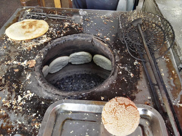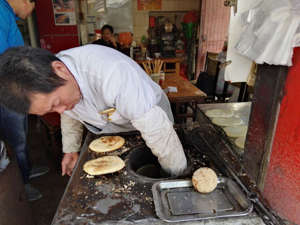 常州人夏亞寶的大麻糕技術(shù)是上世紀(jì)80年代更著新橋麻糕店的師傅周金生學(xué)的,1999年開(kāi)店至今,在附近一帶做得小有名氣,向?qū)W校供應(yīng)麻糕,整整6年。 “做大麻糕太辛苦,半夜爬起來(lái)準(zhǔn)備熱爐子、和面、做餡,年輕人吃不了這苦,15年我都沒(méi)請(qǐng)人,和老婆一起打過(guò)來(lái)的!毕膩唽氈钢直凵系臓C傷的痕跡說(shuō),能堅(jiān)持烤桶制作大麻糕的真心不多了。夏亞寶的烤桶是自制的,爐心常州買(mǎi)不到,他托人從無(wú)錫買(mǎi)來(lái),15年前85元一個(gè),前年漲到150元!翱就暗臓t心其實(shí)就是以前船上人家用的行爐”,去底后鑿個(gè)洞,然后外面加上隔熱材料,最后貼上鐵片”。 15年,這已經(jīng)是第三只貼桶了。