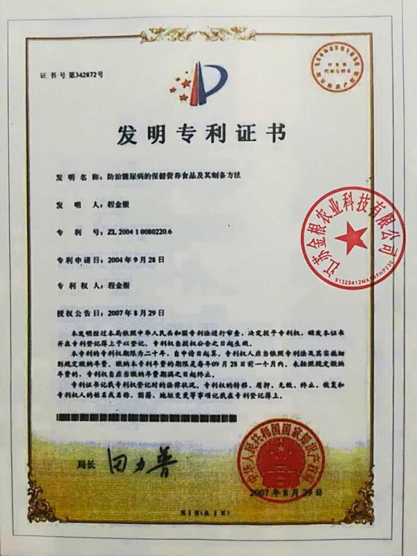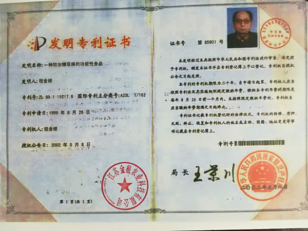 本產(chǎn)品原料是在高寒、高濕、旱地等種植,要求施農(nóng)家肥,采用生物治蟲,因此是無公害的優(yōu)良品種。目前公司有四個種植基地,分別在江西、江蘇、陜西等地。 一種防治糖尿病功能性食品專利號:ZL99119217.6。 “程金根”系列產(chǎn)品先后獲得二項發(fā)明專利,并經(jīng)聯(lián)合國科技成果評估論證為A級產(chǎn)品,屬世界領(lǐng)先技術(shù)。在韓國、美國、香港、德國分別榮獲新技術(shù)、新產(chǎn)品博覽會金獎。