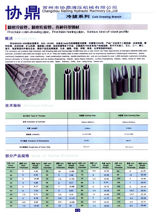 主要生產經營:精密冷拔鋼管,珩磨鋼管,精密活塞桿,液壓油缸、氣缸設計制造.高精密液壓冷拔機、液壓矯直機、珩磨機、掏料機設計制造。公司設有專業(yè)的生產工廠,有多年從事液壓工程研究設計的專家及有豐富實踐經驗的工程技術人員,有專用的生產設備,先進的生產工藝,以及完善的質量保證體系,以確保產品的質量,用最佳的售后服務為客戶增值。