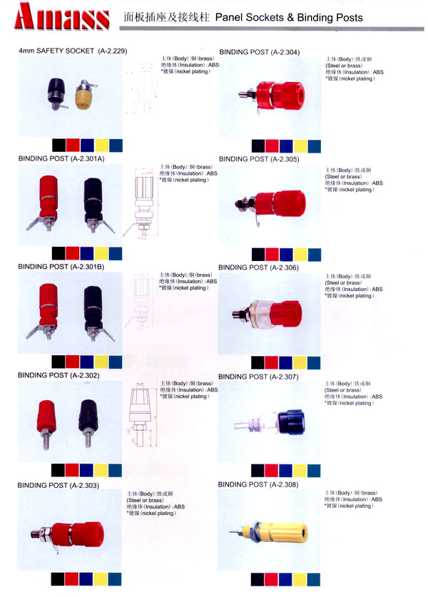 本公司專業(yè)生產(chǎn)各類香蕉插頭,香蕉插座,接線柱,電瓶夾,鱷魚夾,測(cè)試導(dǎo)線,測(cè)試筆等。產(chǎn)品分2mm/2.5mm/3mm/3.5mm/4mm五大系列,百余種款式, 各種香蕉插廣泛用于儀器、儀表、電力測(cè)試、教學(xué)、玩具,視聽設(shè)備、醫(yī)療儀器,保健產(chǎn)品等領(lǐng)域。公司技術(shù)力量雄厚,生產(chǎn)工藝先進(jìn),產(chǎn)品遠(yuǎn)銷港、臺(tái)、歐美,并與飛利浦等國(guó)際品牌配套。公司本著精益求精的理念,歡迎新老客戶光臨。 我們擁有資深的工程師和豐富的電子產(chǎn)品銷售經(jīng)驗(yàn),專業(yè)生產(chǎn)各類電子接插件產(chǎn)品。 香蕉插頭,香蕉插座,電瓶夾,鱷魚夾等品種齊全、 質(zhì)量可靠,致力服務(wù)于通訊、數(shù)據(jù)通信、消費(fèi)類電子產(chǎn)品、計(jì)算機(jī)和計(jì)算機(jī)外圍設(shè)備以及工業(yè)應(yīng)用等領(lǐng)域,能給客戶提供全面采購解決方案。 我們秉承穩(wěn)健作風(fēng)、誠(chéng)實(shí)經(jīng)營(yíng)、合理價(jià)格、完善服務(wù)的宗旨,在全體客戶的支持下,公司不斷創(chuàng)新進(jìn)取,業(yè)績(jī)蒸蒸日上,已與數(shù)十家電子零件制造商及其分支機(jī)構(gòu)建立密切合作關(guān)系,在國(guó)內(nèi)擁有數(shù)百家固定客戶。