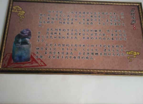 常州市武進(jìn)鄭陸焦溪古村羊肉館選用放養(yǎng)的上等山羊,采用獨(dú)特的配方精心煮制而成,其特點(diǎn):湯呈清色,肉質(zhì)細(xì)膩,味道純正,不腥不膻,色香味俱全。絕對(duì)不含任何食品添加劑,是純綠色食品。特別在冬季,有滋補(bǔ)、祛寒、健身養(yǎng)胃之功效! 在傳統(tǒng)羊肉湯基礎(chǔ)上,力求肉鮮湯鮮的制作原則,用火、刀工、器皿等諸多方面加以改進(jìn),F(xiàn)宰活羊,以優(yōu)質(zhì)的山羊?yàn)橹鳎虿怀臧臊g的捶羯蒙羊膻羯為標(biāo)準(zhǔn)。羊湯的主要技術(shù)就是羊肉湯的獨(dú)特配方,羊湯技術(shù)和羊湯的做法完全是兩碼事,羊湯技術(shù)是純正的羊湯的原始積累技術(shù),也就是包括純正羊肉的配方,羊湯做法如放入羊骨頭、羊肉等,而天然居羊湯之所以出類拔萃,因其羊的湯呈清色狀,鮮潔爽口,不腥不膻,不粘不膩,獨(dú)具特色。用新鮮羊骨、羊肉、羊肚、羊頭、羊腸等羊下水,加以傳統(tǒng)香料配方熬制。由于湯呈清色,喝起來(lái)香而不膻,入口鮮潔爽口、熱燙濃香,營(yíng)養(yǎng)豐富。