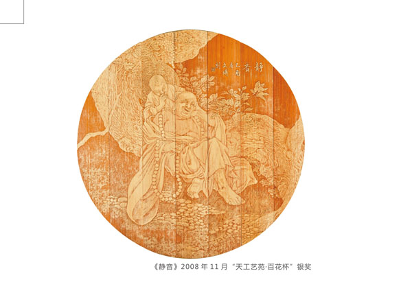 得獎情況 1、扇形擺件《花鳥》2004年9月太湖博覽會金獎 2、《蘭亭序》2008年11月江蘇藝博杯工藝美術(shù)精品獎銀獎 3、《雄風(fēng)圖》2008年11月江蘇藝博杯工藝美術(shù)精品獎創(chuàng)意獎 4、《靜音》2008年11月“天工藝苑•百花杯”中國工藝美術(shù)精品獎銀獎 5、《人物》2008年12月中國收藏藝術(shù)精品博覽會金獎 6、《花鳥》200 8年12月中國收藏藝術(shù)精品博覽會銀獎 7、《青竹鳥語》2008年12月中國收藏藝術(shù)品博覽會“入圍收藏品” 8、《吉祥富貴》2009年3月“金鳳凰”創(chuàng)新產(chǎn)品設(shè)計(jì)大獎賽金獎 9、《黃山云!2009年10月江蘇藝博杯工藝美術(shù)精品獎金獎 10、《花鳥》2009年10月第二屆江蘇旅游商品博覽會最佳產(chǎn)品獎 11、《秋菊圖》2009年11月“天工藝苑•百花杯”中國工藝美術(shù)精品獎銀獎 12、《秋鷹圖》2010年3月“金鳳凰”創(chuàng)新產(chǎn)品設(shè)計(jì)大獎賽優(yōu)秀獎 13、《花鳥四屏》2010年3月“金鳳凰”創(chuàng)新產(chǎn)品設(shè)計(jì)大獎賽銅獎 14、《荷塘清暑》2010年5月深圳國際文化產(chǎn)業(yè)博覽交易會銅獎 15、《溪山煙云圖》2010年9月江蘇藝博杯工藝美術(shù)精品大獎賽金獎 16、《高士臨風(fēng)圖》2010年10月“天工藝苑•百花杯”中國工藝美術(shù)精品獎銀獎 17、《溪山煙云圖》2010年11月第二屆東方工藝美術(shù)之都博覽會“迎春花獎” 18、《深山尋隱圖》2011年3月“金鳳凰”產(chǎn)品設(shè)計(jì)大獎賽銅獎 19、《欣欣向榮》2011年5月深圳國際文化產(chǎn)業(yè)博覽交易會金獎 20、《江崖遠(yuǎn)眺圖》2011年9月江蘇藝博杯工藝美術(shù)精品大獎賽金獎 21、《富春山居圖》2011年10月“天工藝苑•百花杯”中國工藝美術(shù)精品獎金獎 22、《深山訪友》2011年11月中國無錫國際文化藝術(shù)博覽會銀獎 23、《幽谷清音》2012年3月“金鳳凰”創(chuàng)新產(chǎn)品設(shè)計(jì)大獎賽銅獎 24、《群芳競艷》2012年10月“儒仕儒家、百花杯”中國工藝美術(shù)精品博覽會金獎 25、《山村渡口圖》2012年12江蘇藝博杯工藝美術(shù)精品大獎賽金獎。 26、《晨妝》2013年4月“金鳳凰”創(chuàng)新產(chǎn)品設(shè)計(jì)大獎賽金獎。 27、《和風(fēng)圖》2013年6月中國(青島)工藝美術(shù)博覽會創(chuàng)新產(chǎn)品設(shè)計(jì)大賽金獎。 28、《松壑聽泉》2013年9月江蘇藝博杯工藝美術(shù)精品大獎賽銀獎。 29、《君子圖》2013年11月“國信•百花杯”中國工藝美術(shù)精品獎銀獎 30《碧水輕舟》2014年5月深圳國際文化產(chǎn)業(yè)博覽交易會銀獎。 31、《千巖萬壑圖》2014年10月“中國原創(chuàng)•百花杯”中國工藝美術(shù)精品獎金獎 32、《溪山訪友圖》2014年10月江蘇藝博杯工藝美術(shù)精品大獎賽銀獎 33、《深山云壑》2014年12月深圳冬季國際文化產(chǎn)業(yè)博覽交易會金獎 34、《鷹》2015年深圳文化產(chǎn)業(yè)博覽交易會獲“中國工藝美術(shù)文化創(chuàng)意獎”金獎