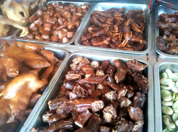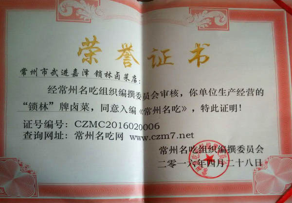 武進(jìn)區(qū)嘉澤老街十字路口,有一家不起眼的鹵菜專賣店,店面雖然不大,但一年365天每天來購買鹵菜的消費(fèi)者卻絡(luò)繹不絕。 這家鹵菜店名叫鎖林鹵菜店,店主名叫萬鎖林。 今年已花甲之年的萬鎖林,出生在武進(jìn)區(qū)的一個(gè)鹵菜世家。解放前,正逢亂世,1927年其父萬友良17歲隨父從蘇北海安至夏溪鎮(zhèn)落戶,全家以經(jīng)營小吃、鹵菜為生。1956年萬友良經(jīng)營的鹵菜小吃店公私合營,起名為東方飯店(后改名為夏溪飯店),萬友良帶領(lǐng)其七個(gè)兒子全部從事餐飲事業(yè)。1972年,排行第六的萬鎖林初中畢業(yè)被分配到嘉澤飯店工作,直至1982年夫妻倆著手創(chuàng)辦鎖林鹵菜館,專業(yè)從事鹵菜的加工和銷售。 鎖林鹵菜采用祖?zhèn)髋浞,制作工藝?jīng)清洗—汆水—再清洗—油汆—加料—燒制—包裝等多道工序。萬鎖林在祖?zhèn)髅胤降幕A(chǔ)上,不斷探索創(chuàng)新,使鹵菜口味更加香醇可口。他還在菜肴中加入茴香、陳皮、桂皮等20多種中草藥,使產(chǎn)品兼具食用保健作用。 由于鎖林鹵菜色、香、味俱佳,而且價(jià)格合理,遠(yuǎn)近數(shù)十里群眾紛紛前來選購目前,該店已形成鴨頭、雞爪、豬頭肉、五香牛肉等四大系列,產(chǎn)品遠(yuǎn)銷北京、上海、浙江、海南及蘇、錫、常各地,深受各地消費(fèi)者青睞。 購買地址: 一、嘉澤鎮(zhèn)菜市場內(nèi) 二、嘉澤鎮(zhèn)老街十字路口 電話:0519-83802086 訂購熱線:18915002160