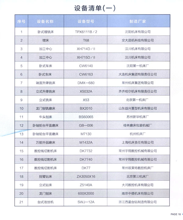 現公司擁有較強的機械加工能力,建立了一套完善的管理機構,技術力量雄厚,設備齊全。設備有:加工中心、鏜銑床、車床、銑床、龍門铇銑床、磨床、數控線切割機床等其它機械加工設備。