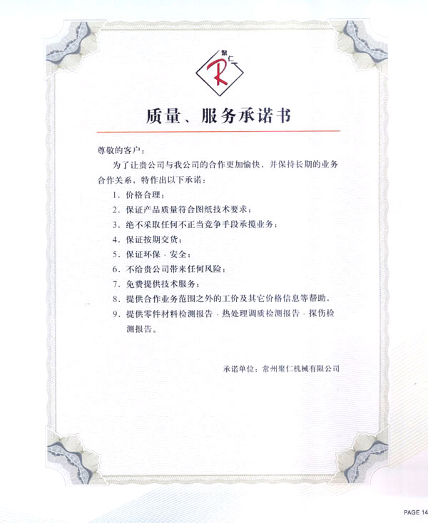 誠實誠信,公正公平:‘誠信不欺,一諾千金’是中國傳統商業(yè)精神的核心。聚仁秉誠傳統的文化精髄,堅持‘質量笫一,顧客至上;不斷開拓,永不滿足’。對外:為人誠實,經商守信,確立信譽;對內:真誠相待,守信如節(jié),形成合力。聚仁全體員工艱苦創(chuàng)業(yè),只有一個目標,創(chuàng)造精品,一切以客戶為上。