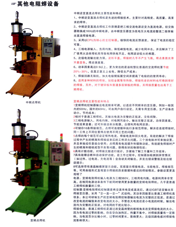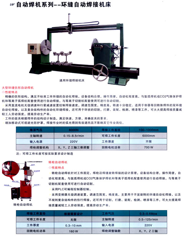 焊割主要產(chǎn)品有:點(diǎn)焊機(jī)系列、縫焊機(jī)系列、環(huán)縫焊接機(jī)床、凸焊機(jī)、排焊機(jī)、儲(chǔ)能焊機(jī)、對(duì)焊機(jī)、龍門(mén)焊機(jī)、太陽(yáng)能焊接設(shè)備和機(jī)器人焊接系統(tǒng)及外圍設(shè)備等;并為用戶(hù)設(shè)計(jì)制造專(zhuān)用焊接設(shè)備。