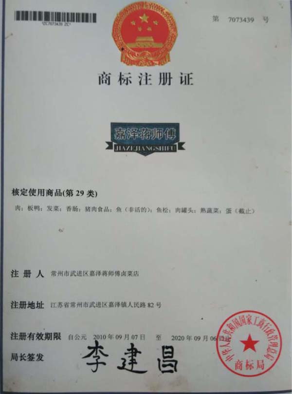 常州市武進(jìn)區(qū)嘉澤蔣師傅鹵菜店經(jīng)營(yíng)已有30多年,本產(chǎn)品采用祖?zhèn)髑旯欧郊右钥茖W(xué)營(yíng)養(yǎng)的獨(dú)特鹵料配方、加入30多種名貴香料和中藥材秘制而成,達(dá)到色、香、味、形的俱加效果。做出來(lái)的產(chǎn)品不僅口感鮮美、香盈撲鼻、而且色澤誘人!肉感細(xì)膩、韌勁適度、有嚼勁、香辣入骨、不加塞牙縫,食用后具有特別的回味宇香,是極好的送禮佳品。
