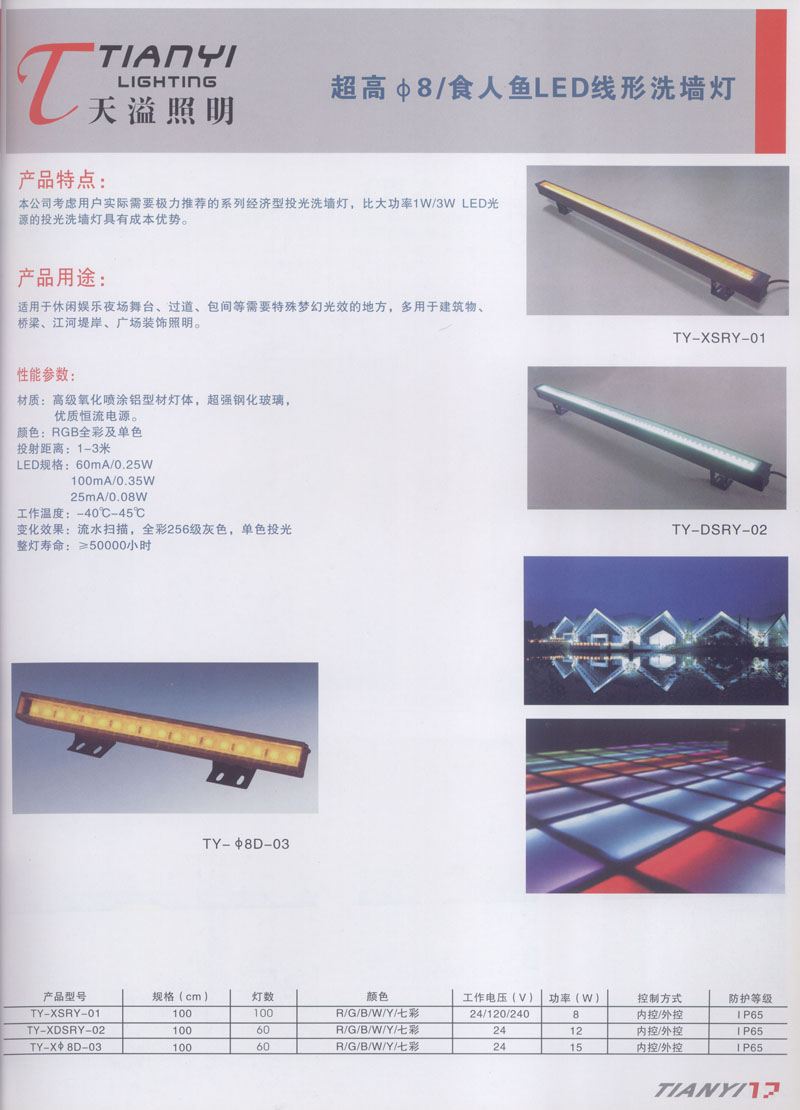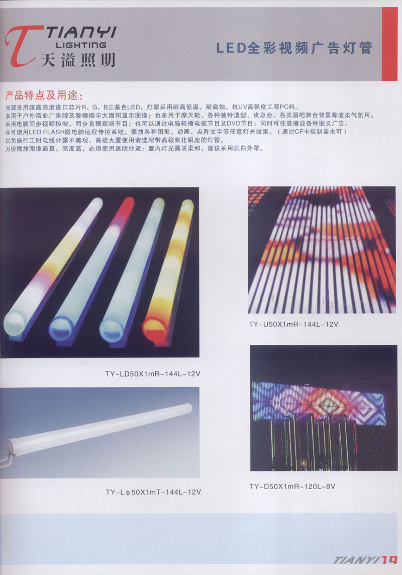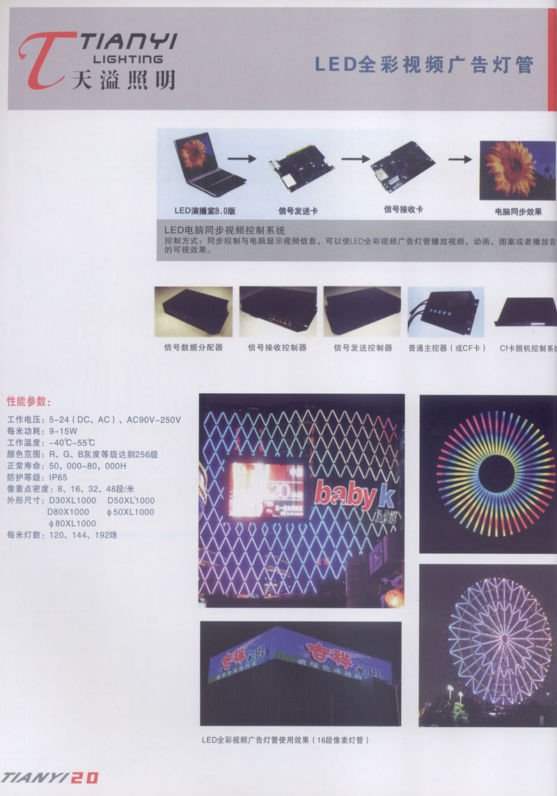 天溢照明是中國領(lǐng)先的專業(yè)從事LED廣告照明裝飾燈具設(shè)計、系統(tǒng)開發(fā)、燈具制造、工程服務(wù)一體的專業(yè)型公司,本公司產(chǎn)品已廣泛應(yīng)用于全國大多數(shù)城市夜景亮化景觀照明、酒店休閑娛樂夜場夢幻燈光、戶內(nèi)外廣告宣傳、建筑及室內(nèi)照明以及家居裝飾等場合。
