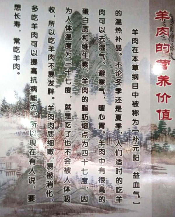 羊肉性溫?zé)、補氣滋陽、暖中補氣、開胃健脾、還可以去濕氣避寒冷,暖胃寒、養(yǎng)吃百草、養(yǎng)根據(jù)自身生理需要選擇草木、固羊有“百藥之庫”之稱。古人云:多吃羊肉、健康長壽。