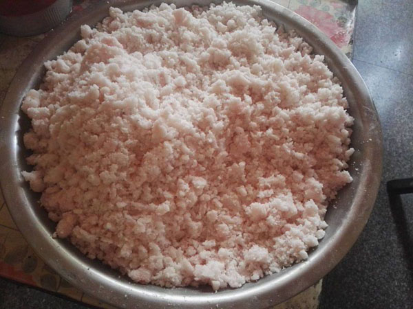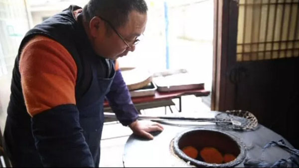常州大麻糕已經(jīng)有150多年的歷史,常武各地的麻糕師傅、麻糕店數(shù)不勝數(shù),但今天小編要帶大家去的是一家隱藏在背街小巷里,至今仍保持著傳統(tǒng)手工制法的麻糕店。 沈正昌麻糕店位于遙觀鎮(zhèn)東街、國寧寺旁,雖然店門口連個招牌都沒有,卻不妨礙四面八方的食客慕名而來,大伙看中的正是這些純手工制作,原汁原味的大麻糕。如今的店主沈國平已經(jīng)是沈家第四代做麻糕的傳人了。 秉承著爺爺那輩傳下來的手藝,他們制作的麻糕塊大實誠,用料講究,口感酥軟,深受四周鄉(xiāng)鄰的歡迎。“我們還是老法,酥是生板油身擦的,餡里也是生板油摻糖,是真的綠色產(chǎn)品,沒有添加劑,沒有防腐劑,也不用甜蜜素,都是真家伙! 每天凌晨一兩點鐘,沈國平就要去采買當天最新鮮的豬板油,回來清理干凈,和上面粉攪拌均勻,制成面團。麻糕的制作主要由沈國平妻子和兩個姊妹來完成。揉面、搓胚子、配油酥,按餡心、搟均勻,整個過程行云流水,連貫無比。 當爐火燒得正旺,溫度能高達近300度,沈國平就上場了,赤手空拳,一撈一貼,一秒鐘的功夫,就把麻糕貼到了桶壁上。不過幾分鐘的功夫,麻糕就出爐了。經(jīng)過炭火爐子烤出來的,比一些電烤爐烤出的更香、更脆。