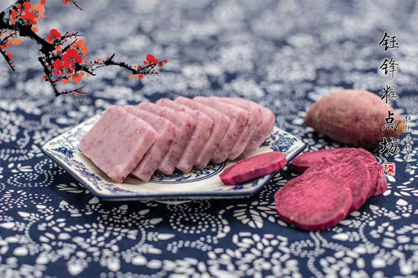 腳踏糕本名“年糕”,按常州周邊地區(qū)的風俗習慣,在春季前夕,各家各戶都要蒸年糕,吃年糕!案狻敝C音“高”,過年吃年糕被賜予“年年高”,一年高一年,鋒吉祥之意,表達這人們對未來美好生活的憧憬和良好的祝愿。今天小編要帶大家的就是一家至今保持著傳統(tǒng)手工制作的鈺鋒糕點坊。   鈺鋒糕點坊位于常州鄭陸鎮(zhèn)三皇廟范家莊,一個比較偏僻的村莊,雖然這家作坊不大,但香糯絲滑,軟糯適中,韌勁十足的腳踏糕吸引了無數(shù)的食客。制作一條腳踏糕要從淘米,浸泡,碾粉,鋪粉,一層一層的鋪下去,需要無數(shù)道制作工序,這些都是店主孫煥公公老周,憑著幾十年的經(jīng)驗,加上店主孫煥從不馬虎的決心!   這“腳踏”也并非赤腳上陣,而是把蒸好的糕倒入早以準備好的框子里,用布包裹好,上面再用薄膜包好,再蓋上布,再換上專門腳踏的布鞋,踩的時候要勻稱,左右腳要配合好,不然糕會高高低低,不平整,最后再拿蠟燭線拆成一條小長條,再拿帶包裝好,如此又香又糯的腳踏糕就大功告成了。   店主孫煥為了讓更多的人認識和了解常州腳踏糕的傳統(tǒng)文化和美食,她在傳統(tǒng)工藝中增加了適合現(xiàn)代文化的多種口味,她在糕里加入南瓜,紫薯,老紅糖,大麥汁,血糯米,核桃,葡萄干,紅棗等食材,做出五顏六色,純天然的口味,深受食客們的喜愛,不管是送人還是自己吃都非常新穎。