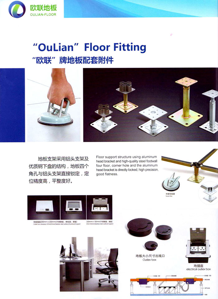防靜電高架活動地板、全鋼地板、陶瓷地板是計算機(jī)行業(yè)發(fā)展起來的新型鋪地材料,隔離了潮氣、靜電灰塵,最重要的是解決了綜合布線問題,無需預(yù)埋管線,可隨時拆卸、搬移,保證了資訊設(shè)備完整的優(yōu)點(diǎn),適應(yīng)了智能化樓宇中信息自動化技術(shù)對所處環(huán)境的特定要求,避免了廣大客戶的雙重投資,使現(xiàn)代化辦公程度更加高效,辦公場所更加舒適。 “歐聯(lián)”系列全鋼地板,符合國家安全要求,種類完備多樣,其中防靜電陶瓷地板、硫酸鈣地板等除具有普通瓷質(zhì)的裝飾和實(shí)用性外,其耐磨、防水、防火功能優(yōu)于其它同類產(chǎn)品,防靜電系列地板,能切合不同客戶的要求,其靈活的配置,深受客戶歡迎,不同材質(zhì)的地板結(jié)構(gòu)使設(shè)計師的設(shè)計空間比傳統(tǒng)的更加廣闊自由和善變。 公司大力發(fā)展國內(nèi)外銷售業(yè)務(wù),多次中標(biāo)國內(nèi)重點(diǎn)工程 ,例:哈爾濱醫(yī)科大學(xué)、山東大學(xué)、上海普通機(jī)場等。 公司將一如既往開發(fā)和制造一流的產(chǎn)品,愿與廣大有識之士合作發(fā)展,共創(chuàng)美好未來。