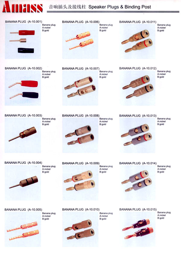 本公司專業(yè)生產(chǎn)各類香蕉插頭,香蕉插座,接線柱,電瓶夾,鱷魚夾,測試導(dǎo)線,測試筆等。產(chǎn)品分2mm/2.5mm/3mm/3.5mm/4mm五大系列,百余種款式, 各種香蕉插廣泛用于儀器、儀表、電力測試、教學(xué)、玩具,視聽設(shè)備、醫(yī)療儀器,保健產(chǎn)品等領(lǐng)域。公司技術(shù)力量雄厚,生產(chǎn)工藝先進(jìn),產(chǎn)品遠(yuǎn)銷港、臺、歐美,并與飛利浦等國際品牌配套。公司本著精益求精的理念,歡迎新老客戶光臨。