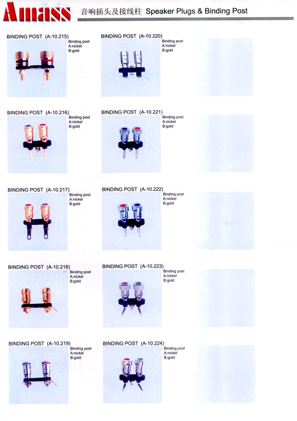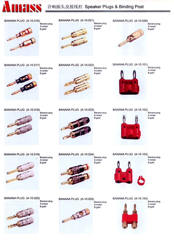 本公司專業(yè)生產(chǎn)各類香蕉插頭,香蕉插座,接線柱,電瓶夾,鱷魚夾,測試導(dǎo)線,測試筆等。產(chǎn)品分2mm/2.5mm/3mm/3.5mm/4mm五大系列,百余種款式, 各種香蕉插廣泛用于儀器、儀表、電力測試、教學(xué)、玩具,視聽設(shè)備、醫(yī)療儀器,保健產(chǎn)品等領(lǐng)域。公司技術(shù)力量雄厚,生產(chǎn)工藝先進(jìn),產(chǎn)品遠(yuǎn)銷港、臺、歐美,并與飛利浦等國際品牌配套。公司本著精益求精的理念,歡迎新老客戶光臨。